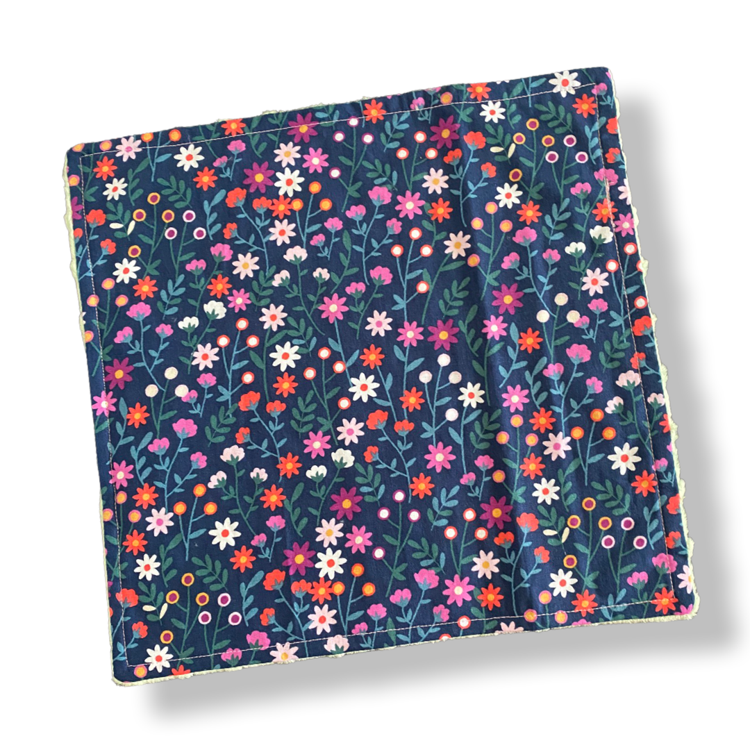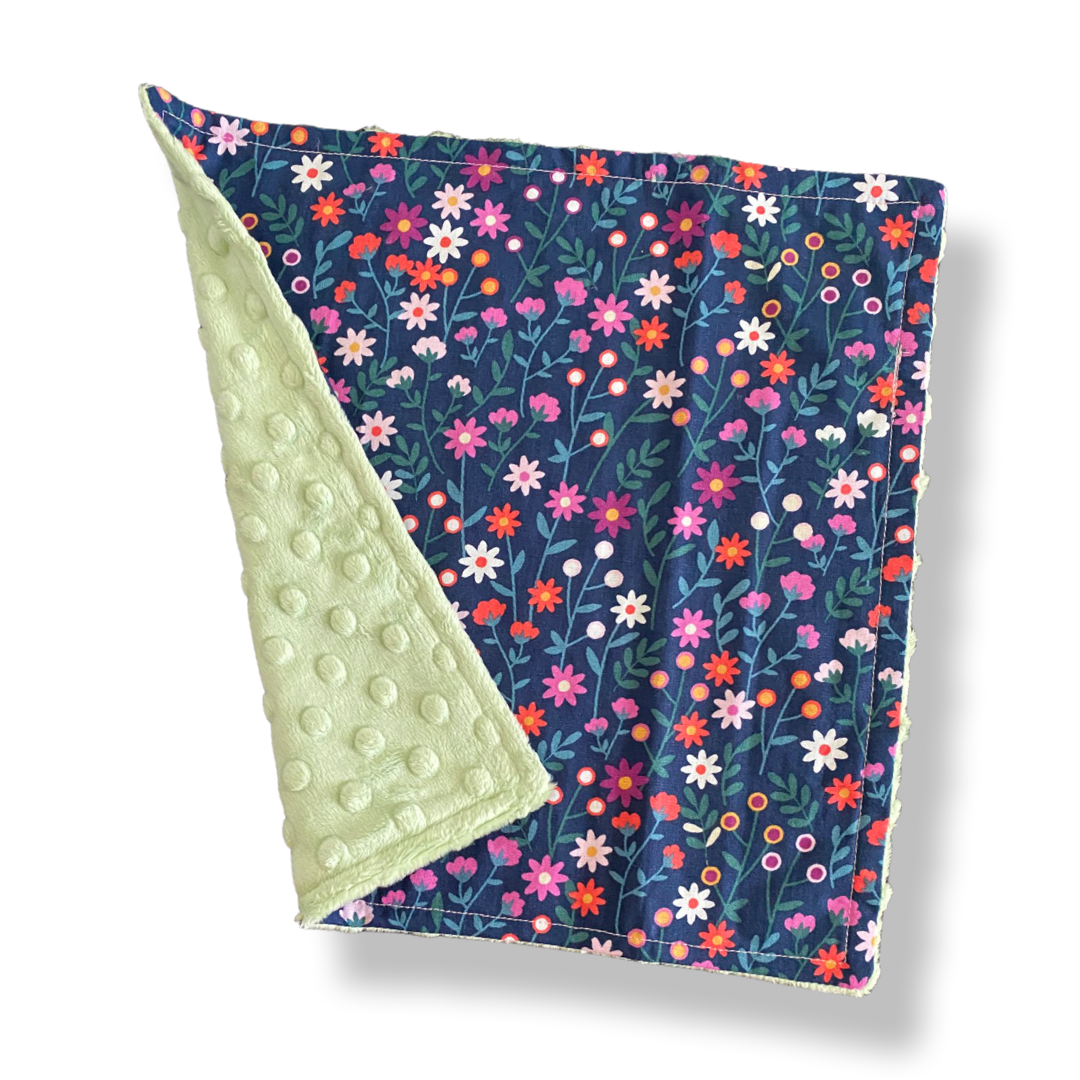 Our baby lovies are backed with Minky fabric. Minky is a soft, plush material made from polyester fibers.