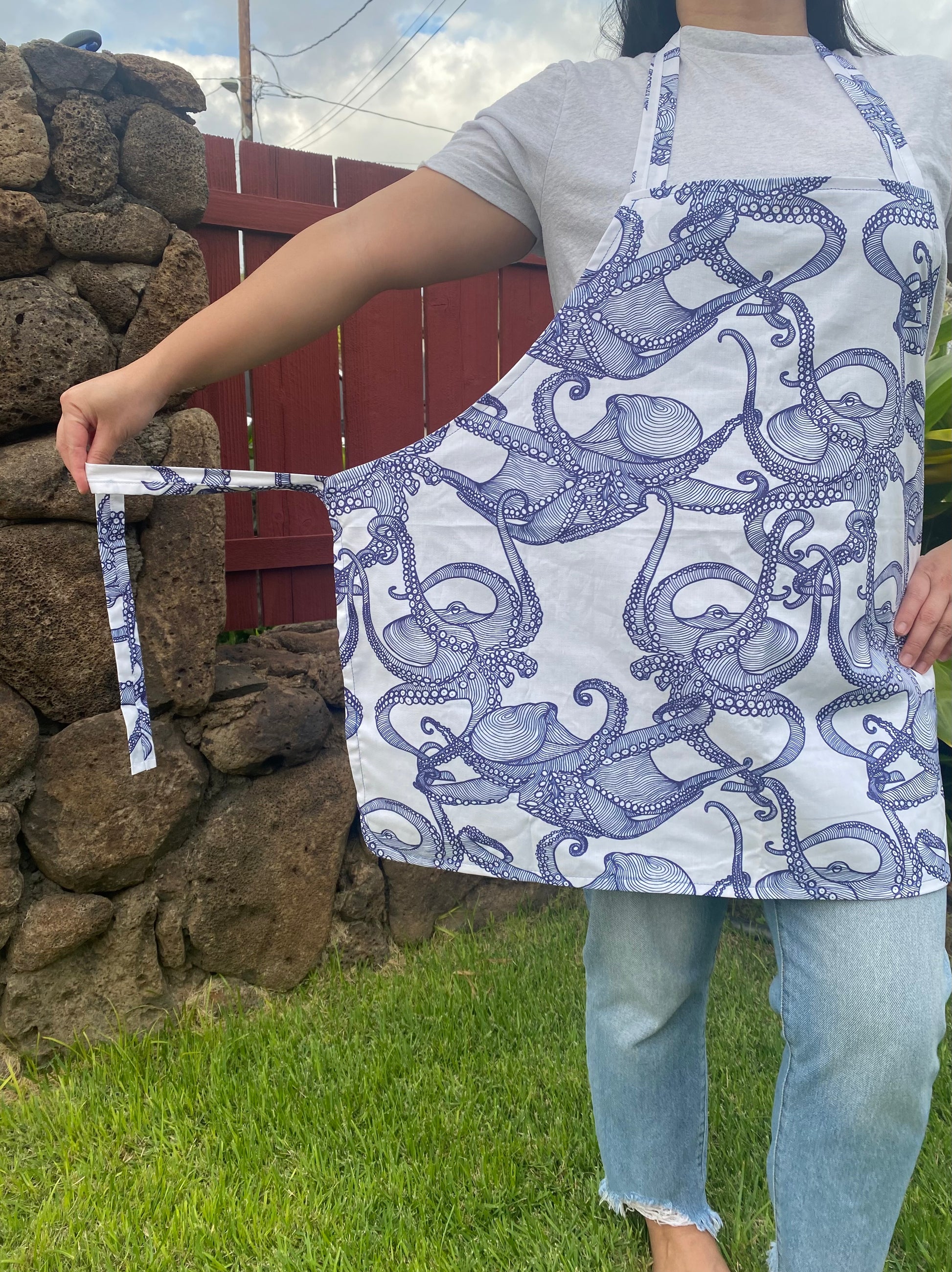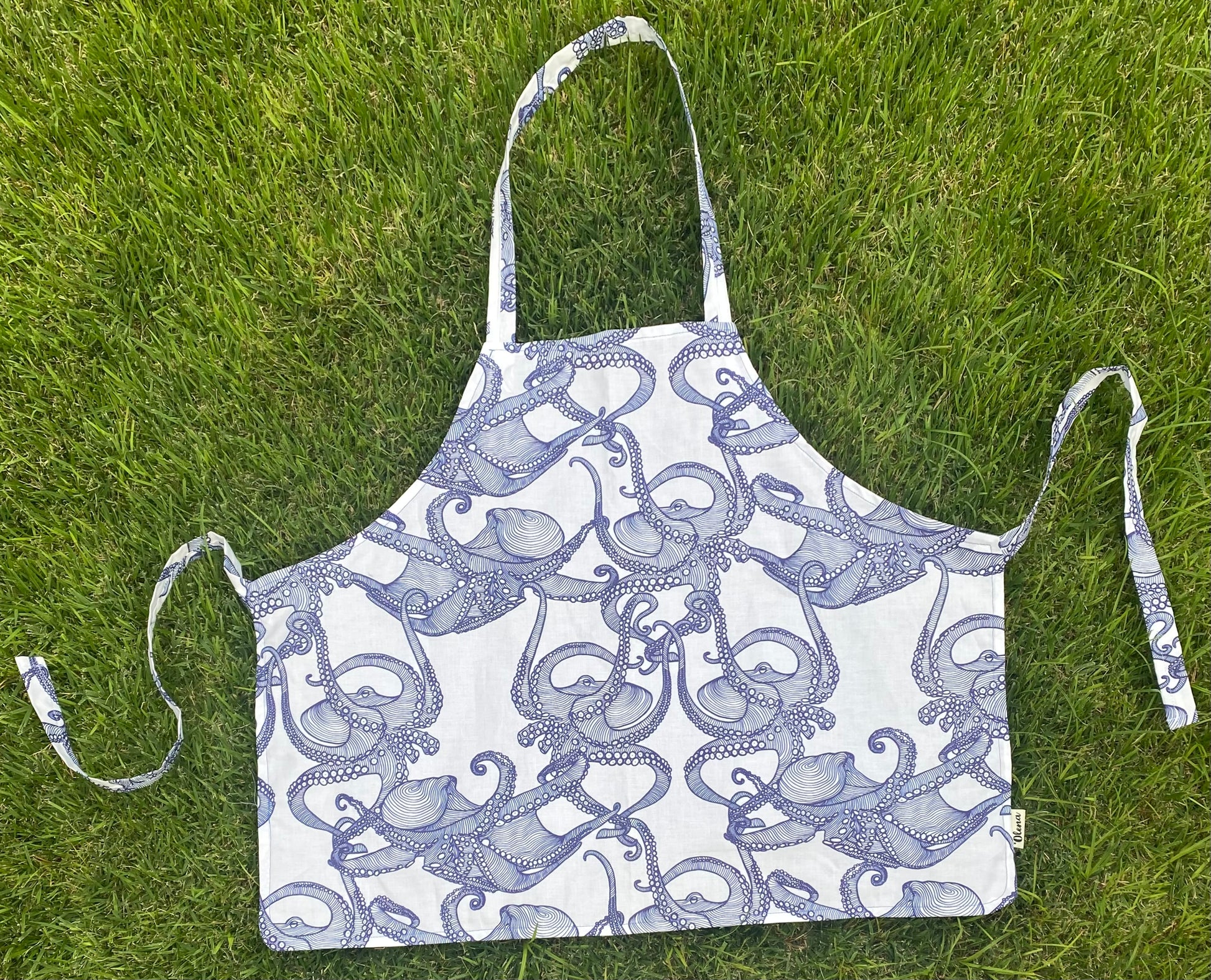 Our aprons are made with cotton fabric. Machine wash cold with like colors on a gentle cycle. Hang dry or tumble dry on low.