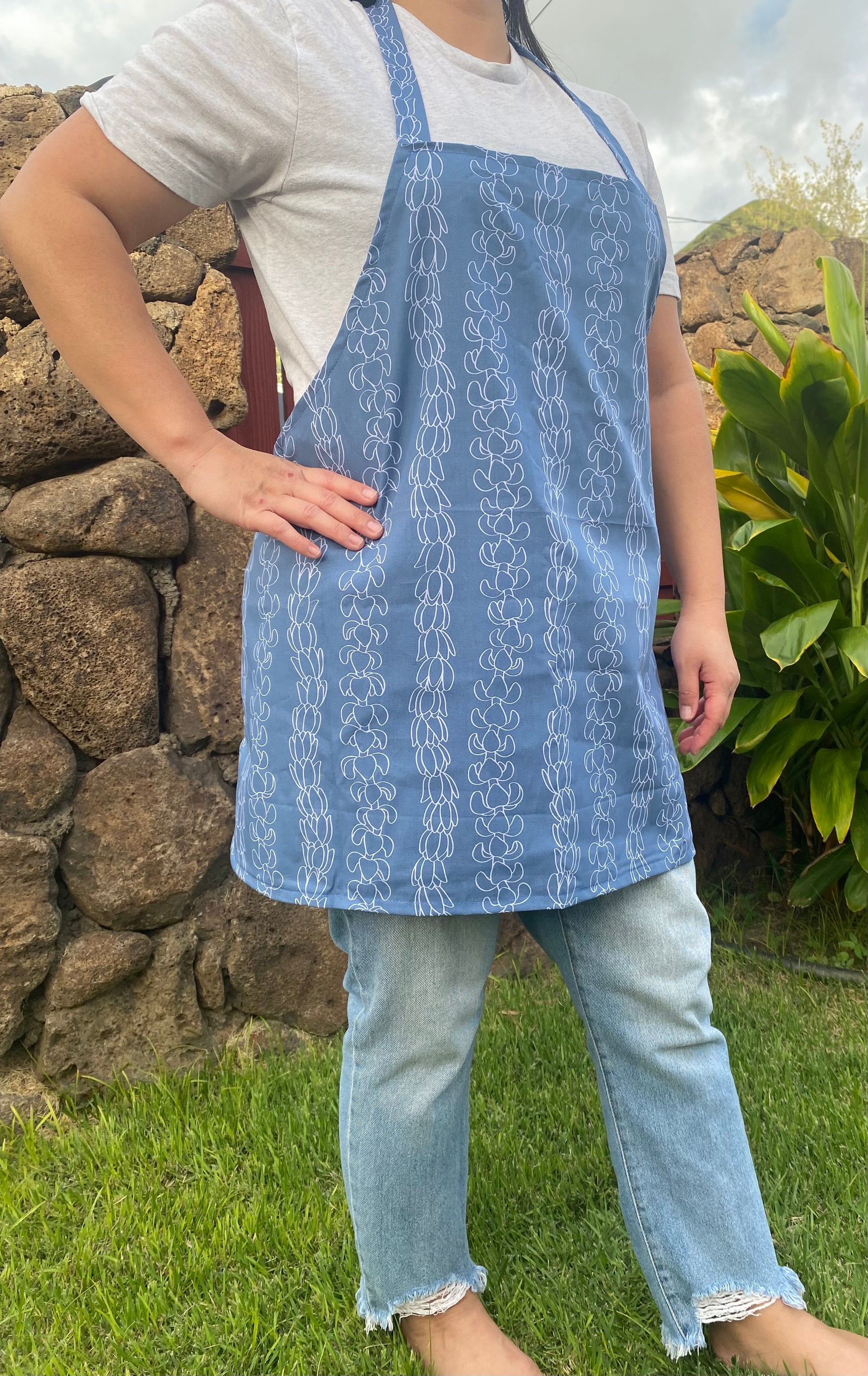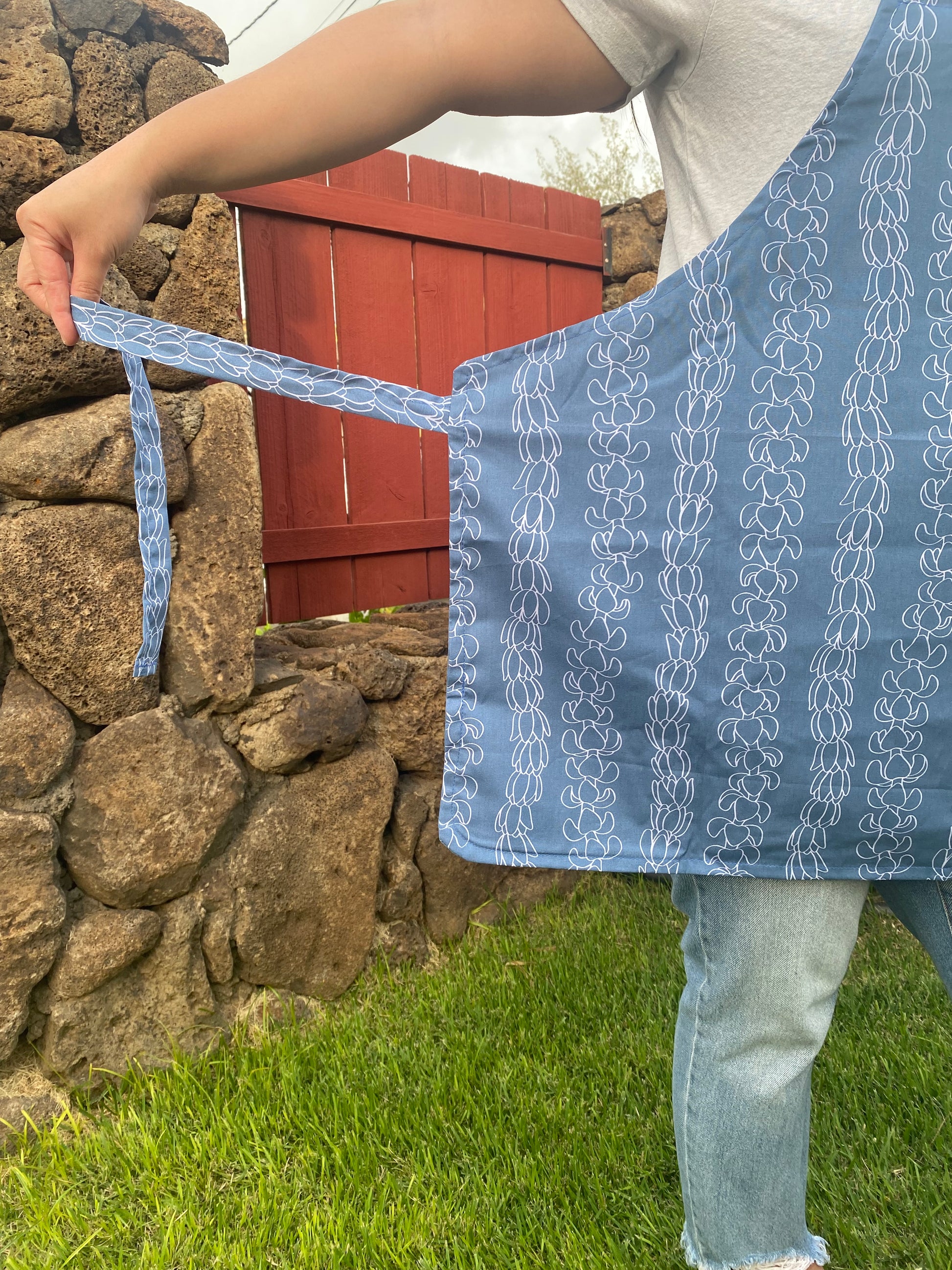 Our aprons are made with cotton fabric. Machine wash cold with like colors on a gentle cycle. Hang dry or tumble dry on low.