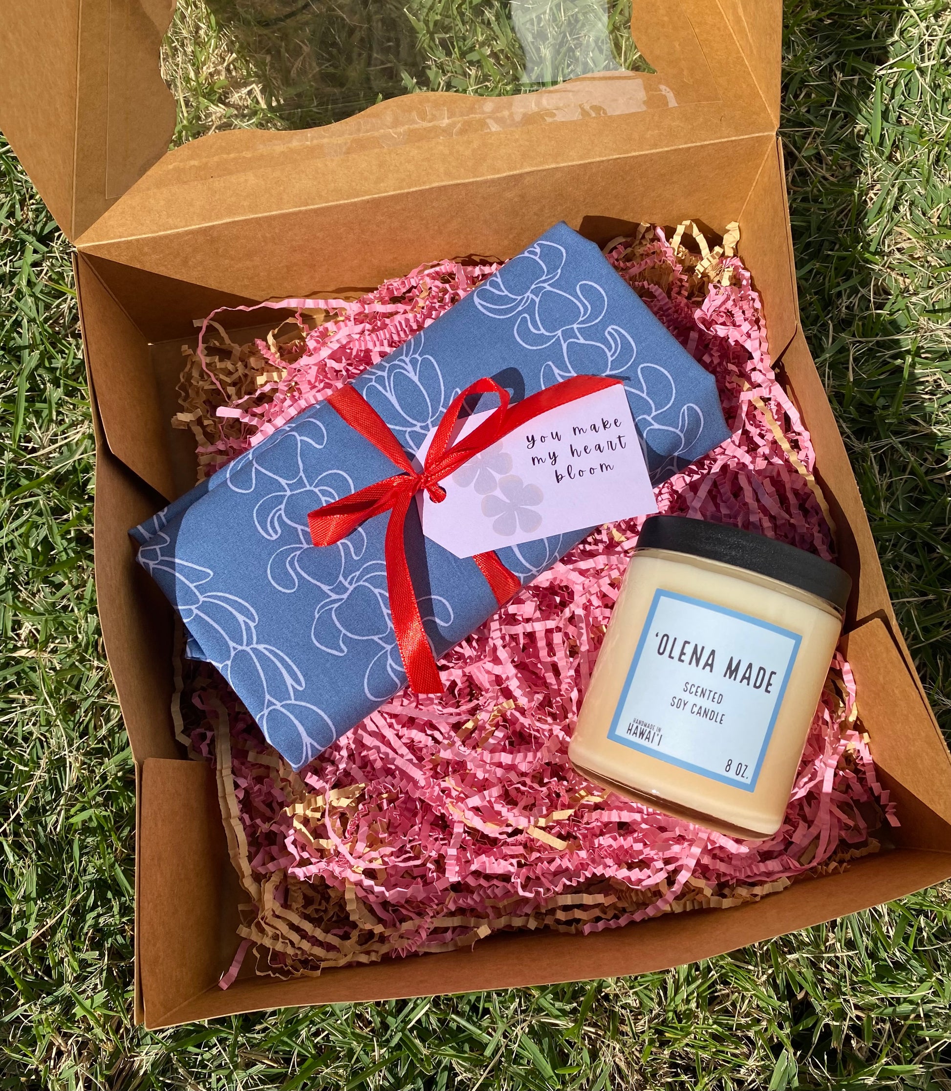 You Make My Heart Bloom Candle Valentine's Gift Box - Blue Keni + Pikake Pink Starburst