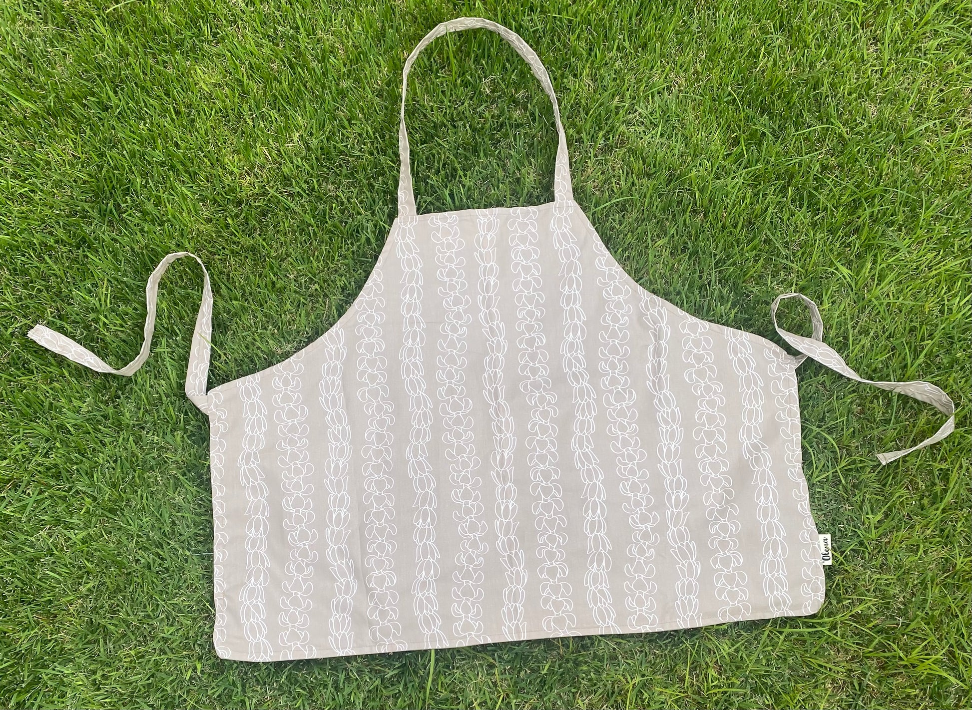 Our aprons are made with cotton fabric. Machine wash cold with like colors on a gentle cycle. Hang dry or tumble dry on low.