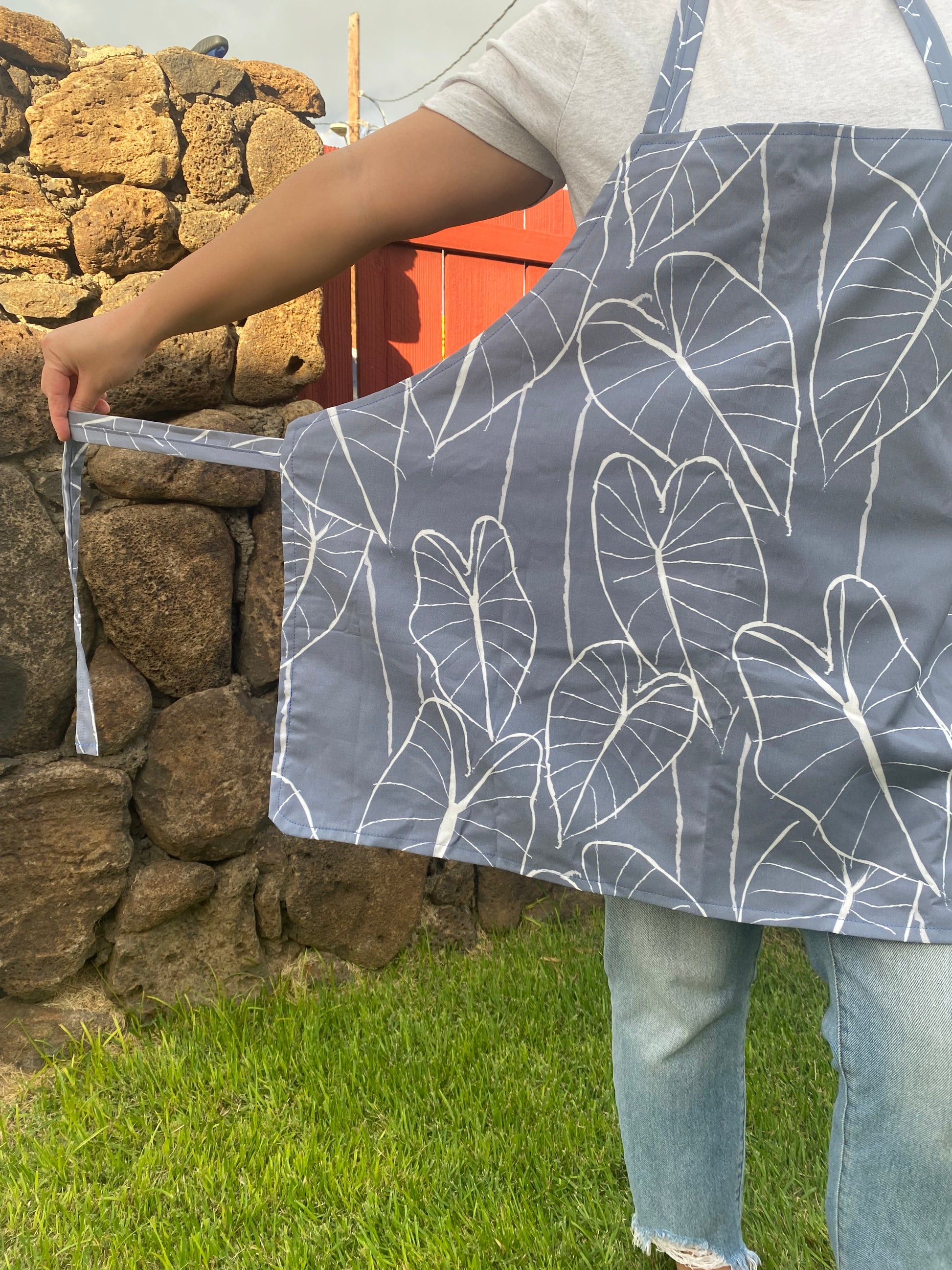Our aprons are made with cotton fabric. Machine wash cold with like colors on a gentle cycle. Hang dry or tumble dry on low.