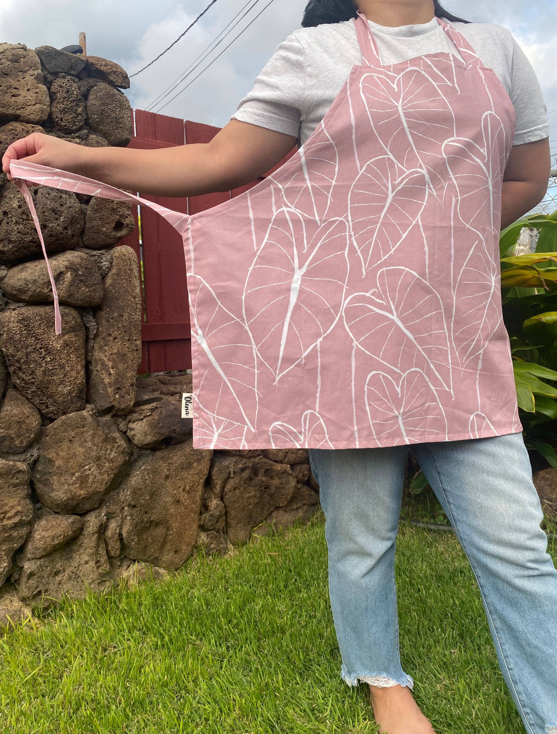 Our aprons are made with cotton fabric. Machine wash cold with like colors on a gentle cycle. Hang dry or tumble dry on low.