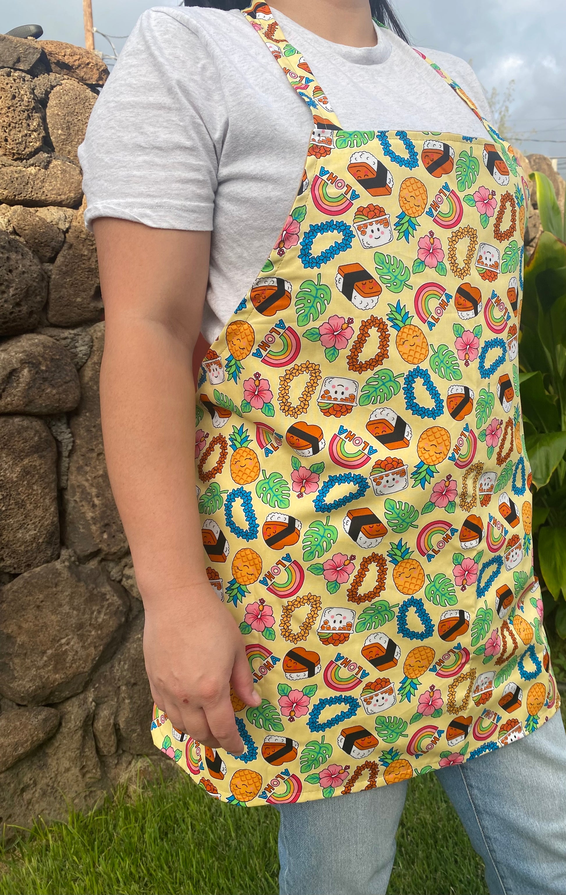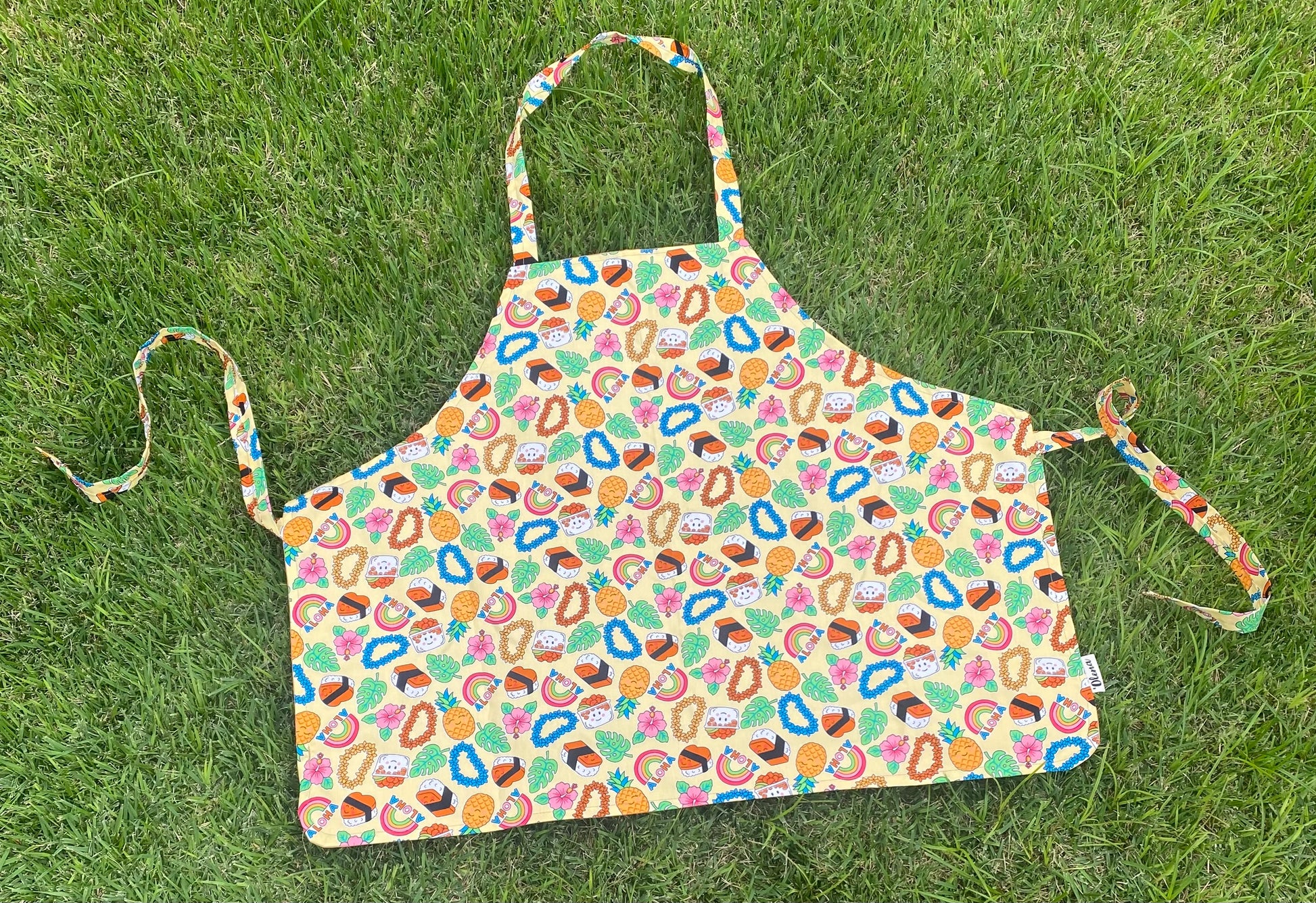 Our aprons are made with cotton fabric. Machine wash cold with like colors on a gentle cycle. Hang dry or tumble dry on low.